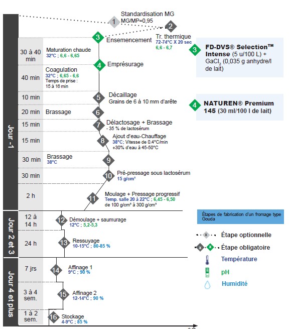 Déroulé de fabrication d’un fromage type Gouda Pâte pressée non cuite type
