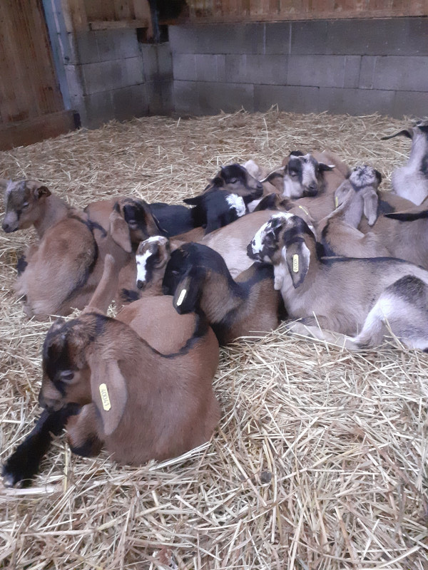 À réserver, chevreaux mâles et femelles à naître à partir du 10 février 2026. Issus de chèvres croisées Alpines et Anglo-nubiennes. Très bon rendement fromager. Vendus à 8-10 jours. Élevage certifié en agriculture biologique.