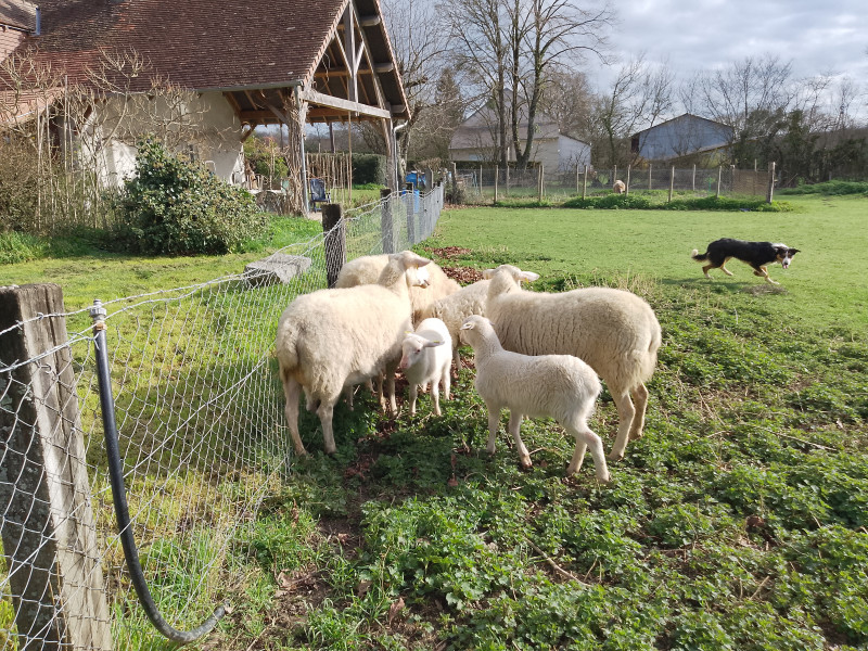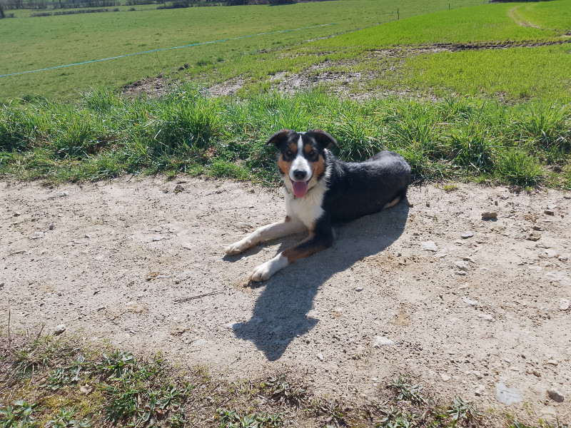 Dressage à continuer, déclaré sur ovins, ordres et apprentissages de base mis en place.