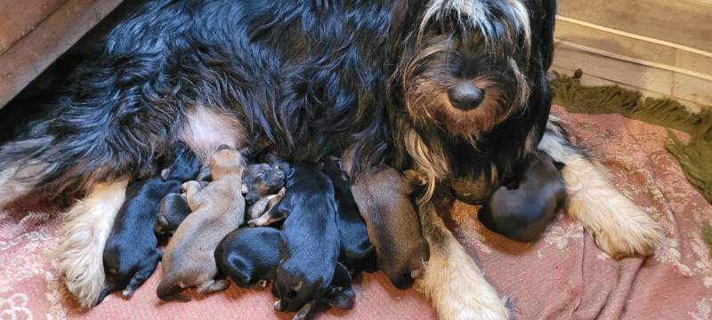 La portée comporte 7 mâles et 4 femelles et il y a plusieurs couleurs (fauve ou noire). Ils seront disponibles à partir du 15/02/25.