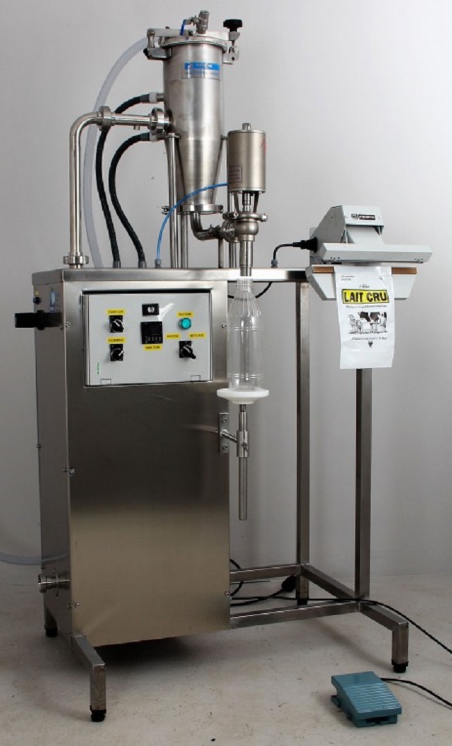 Cette machine permet de conditionner en bouteille, ou en sachets, de façon semi-automatique des liquides alimentaires ou de la mozzarella.