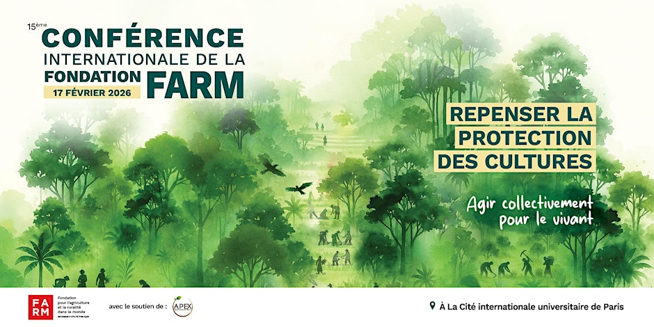 Conférence internationale de la Fondation FARM. Repenser la protection des cultures : agir collectivement pour le vivant (75) 17 février 2026 à la Cité internationale universitaire de Paris – 9h00/18h00 Inscription et programme AP