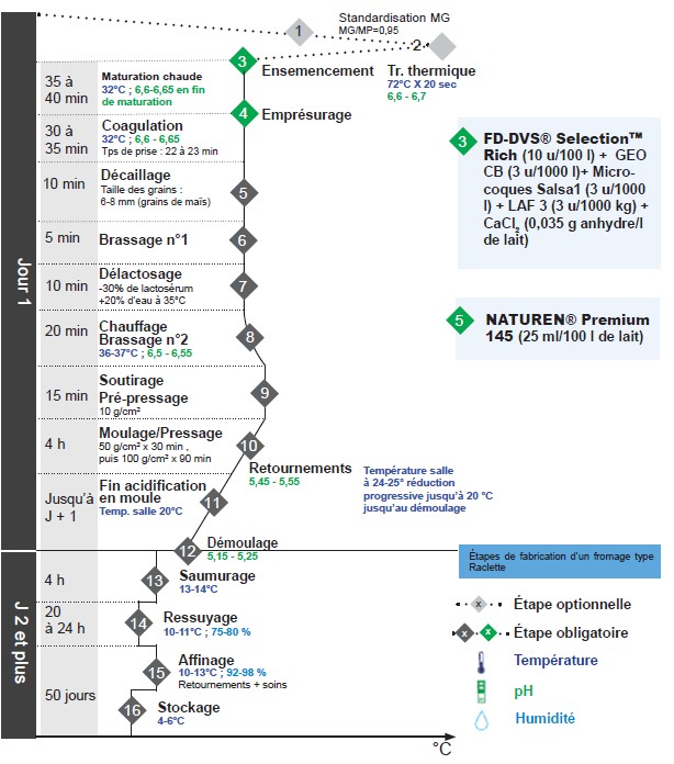 Les raclettes doivent présenter de bonnes aptitudes culinaires lors de leur utilisation à chaud (fort étalement, faible brunissement, faible sortie de matière grasse). Pour cela il faut agir dès la mise en oeuvre du lait. Suivez les conseils de notre partenaire chr HANSEN dans la fabrication de ce fromage qui réuni famille et amis pendant les froides soirées d’hiver pour un moment convivial et goutteux.