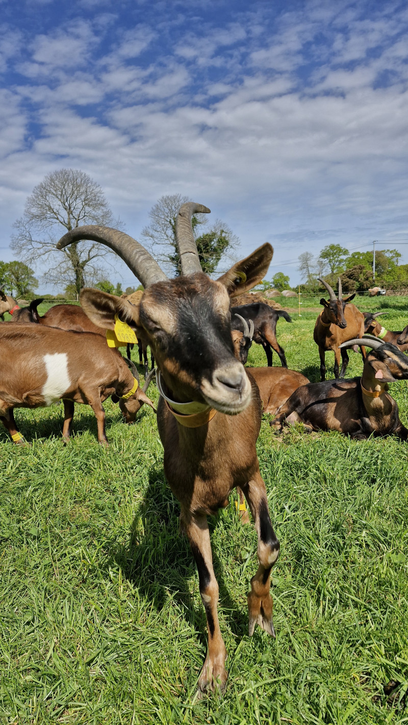 A vendre 11 chèvres laitières et 1 bouc, Alpines et croisées Anglo Nubienne, cornues.