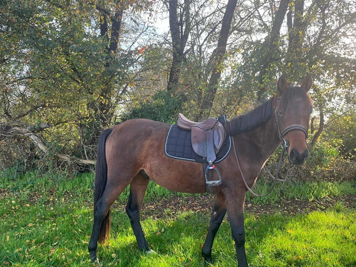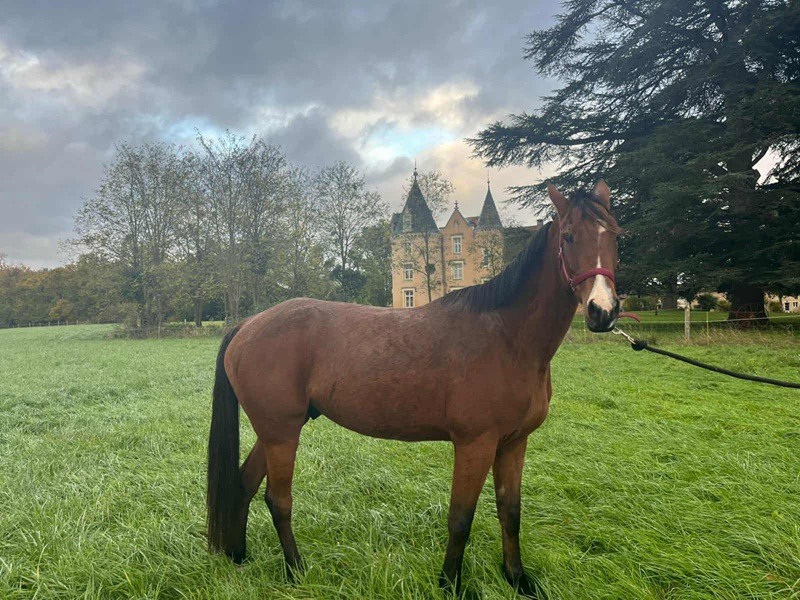 1 : Niemen est un jeune cheval bai qui va prendre 3 ans en janvier. Toise actuelle 1 m 50 (va continuer de grandir), super gentil à pieds comme à cheval, sera un parfait petit cheval pour créer une vraie relation. Galope facilement et saute en liberté de petits obstacles. N'a jamais couru.