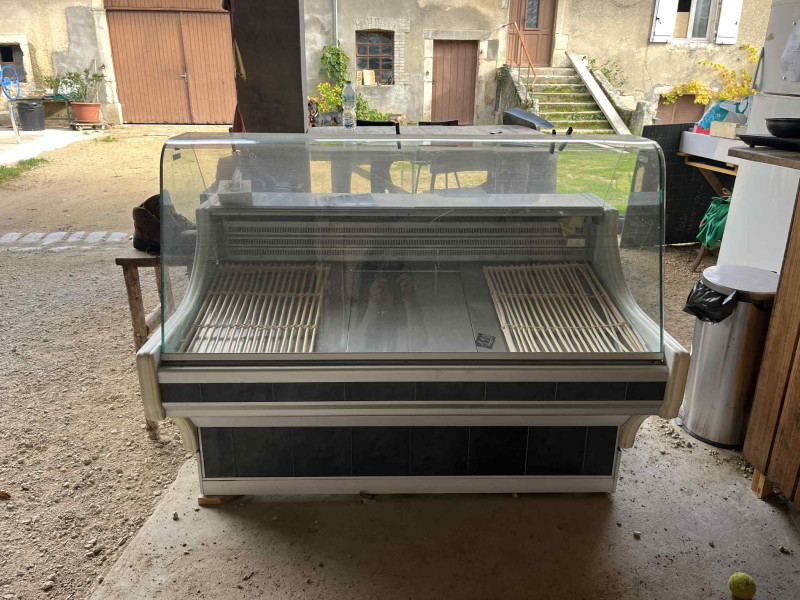 Rangements réfrigérés en dessous, prise pour brancher une balance derrière.